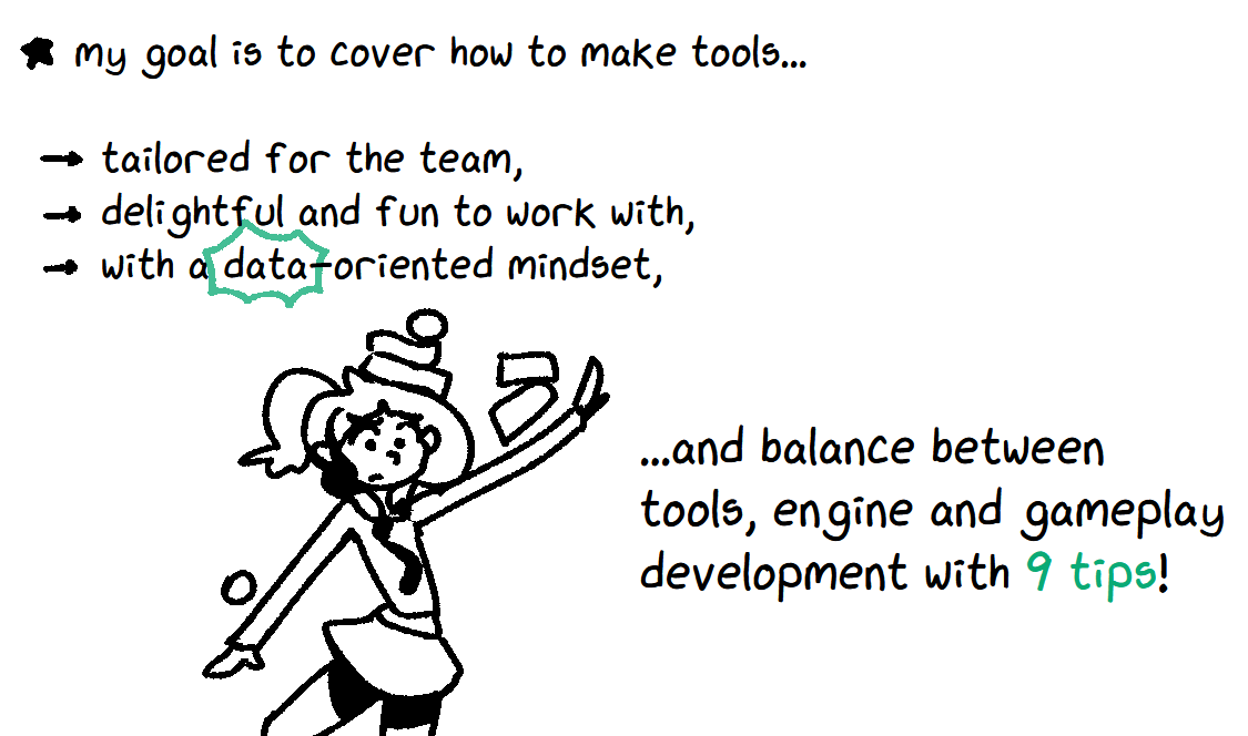 I got to do a 1-hour talk on GDC on how I manage to balance gameplay and tools development in a way that scales on the long term. Unfortunately, there’s no free way to watch this talk (yet????) but here’s a link anyway: